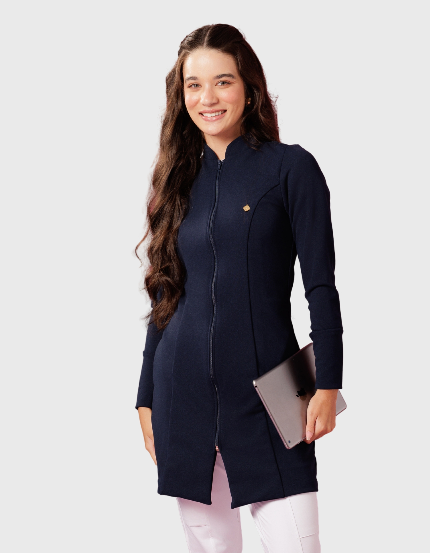 Jaleco Feminino Ava é um modelo de jaleco diferenciado, de modelagem ajustada e caimento perfeito, trazendo um visual moderno para seu look do dia-a-dia.