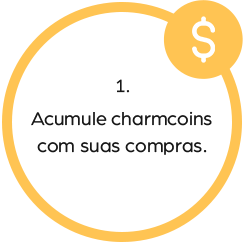 A cada R$ 1 real em compras você acumula 1 charmcoin.