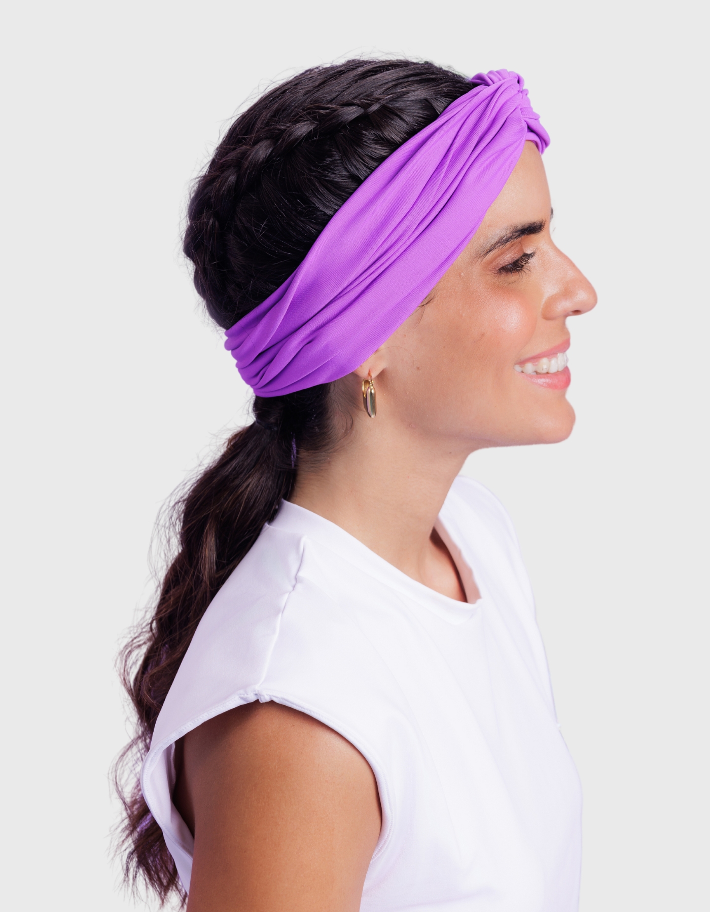 Faixa 2 em 1 Feminina é o adereço de cabelo elástico e revestido com tecido de poliamida para deixar um look mais estiloso. Pode ser utilizado como faixa ou turbante. Roxo