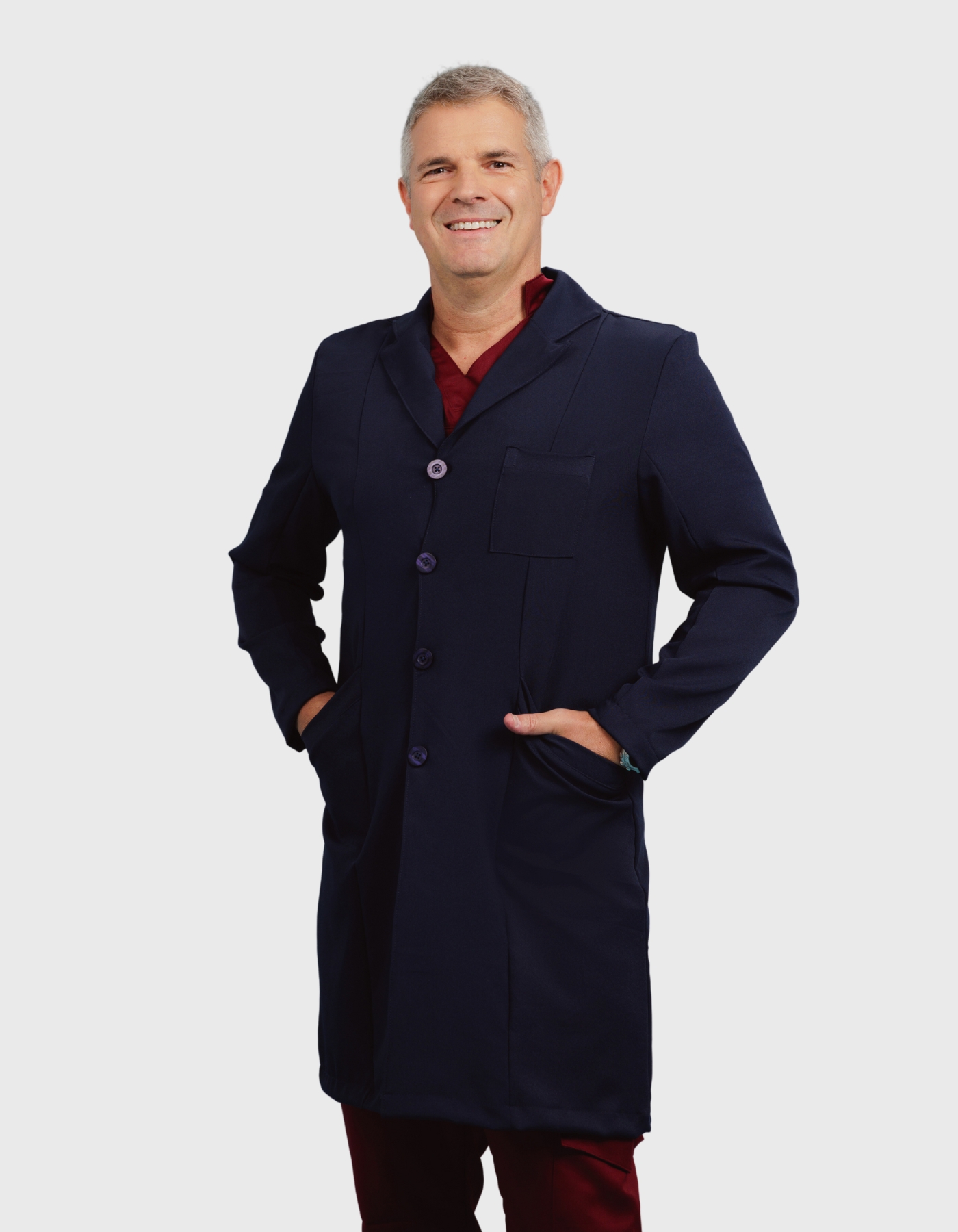 Jaleco Masculino New Basic é um modelo de jaleco tradicional de modelagem reta e caimento perfeito, trazendo um visual elegante para seu look do dia-a-dia.