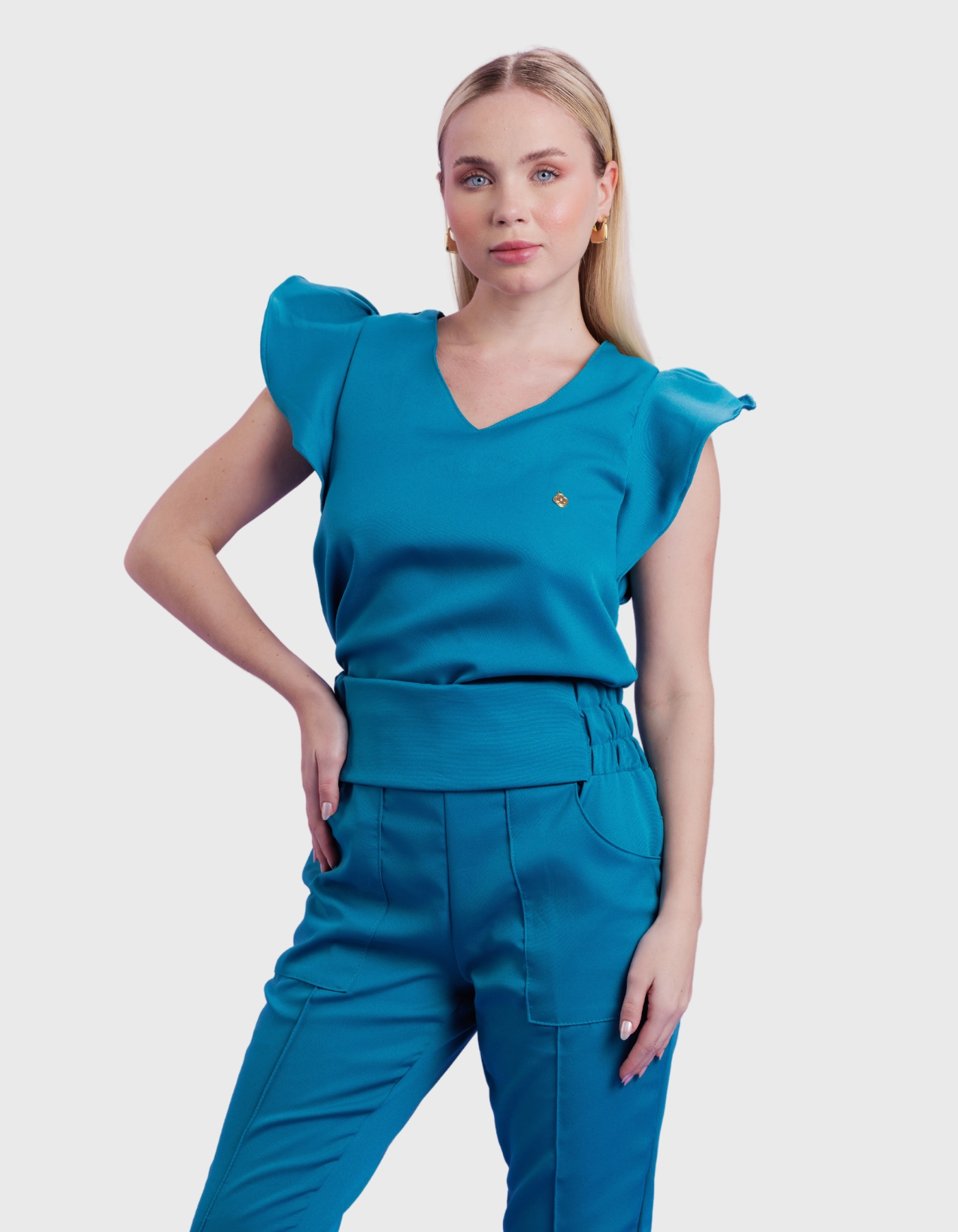 O scrub Mariah é confecçionado em tecido de alfaiataria ideal para scrubs, pois é molinho e se adequa ao corpo sendo mais dificil de amassar.