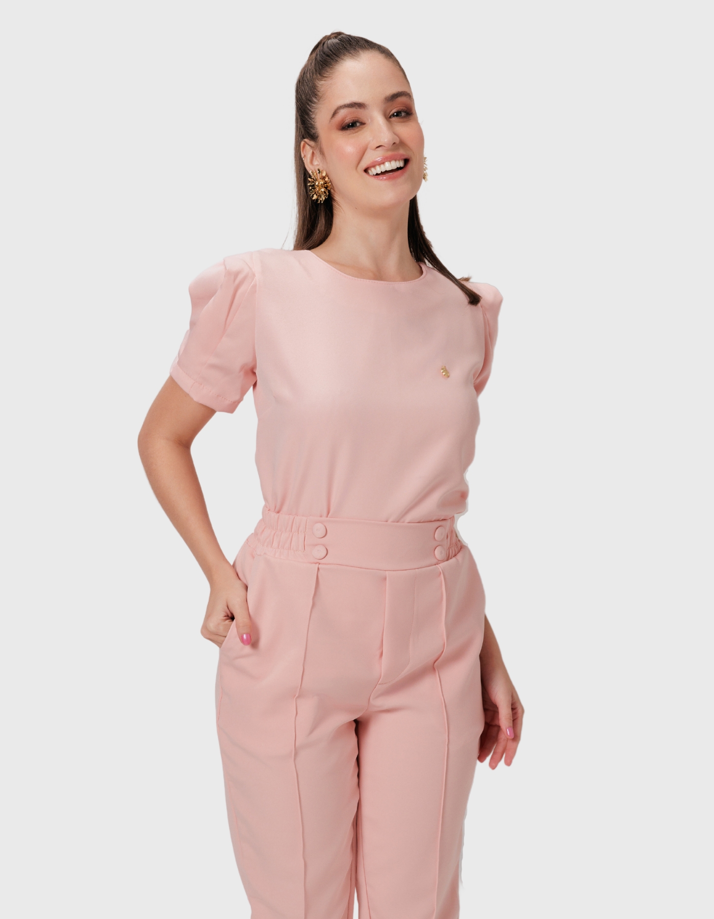 • Calça com prega e detalhe de botões