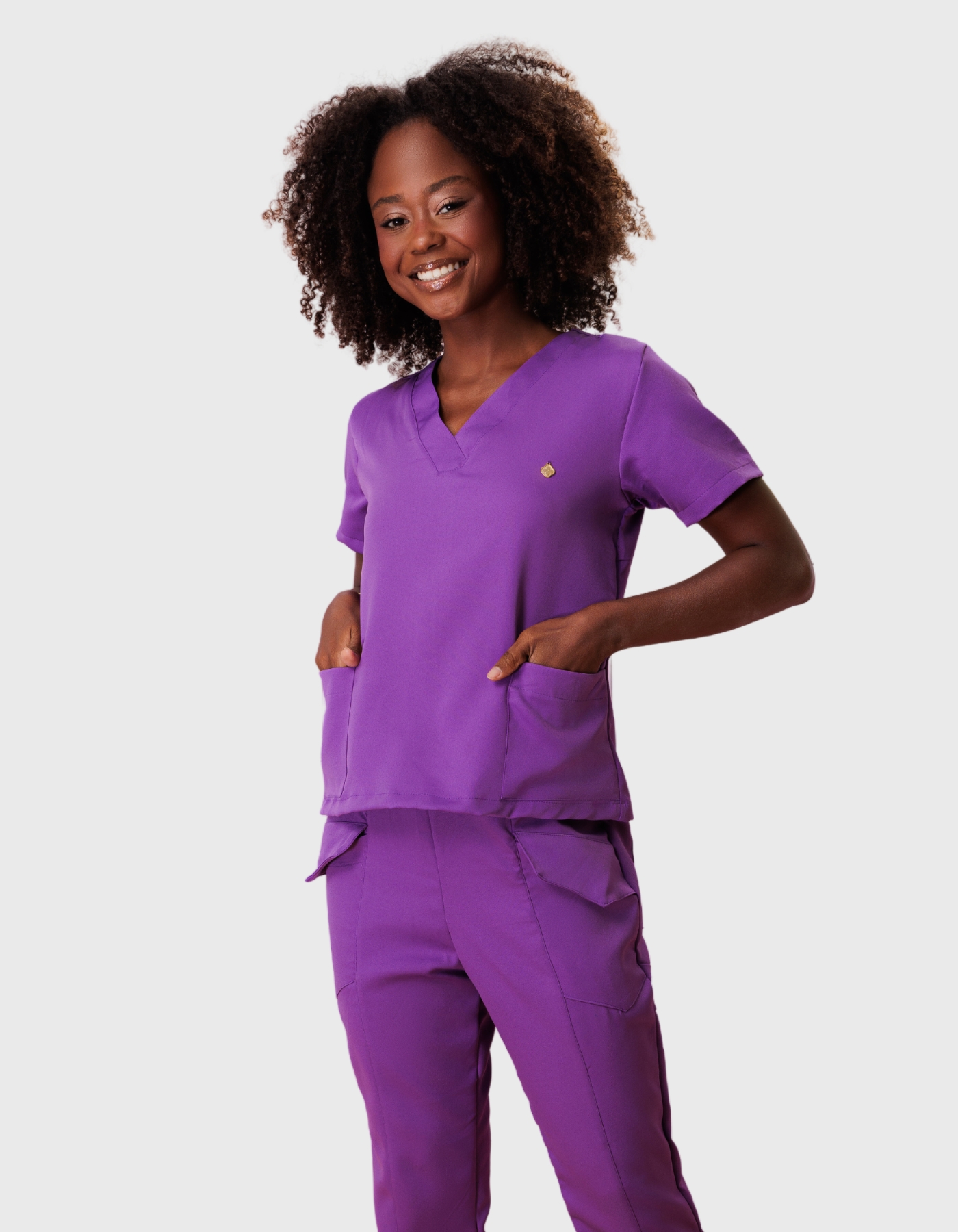 Scrub Feminino Sophia é a evolução do "pijama cirúrgico" com modelagem slim e caimento perfeito, trazendo um visual moderno para seu look do dia-a-dia.